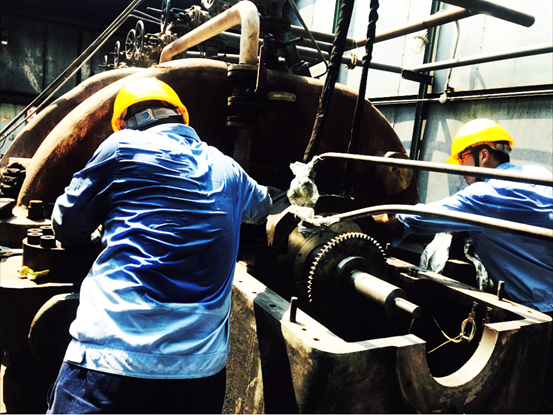 8月19日,在接到张家港某用户的TRT设备检修需求后,星空电竞系统服务事业部浮广华、温忠于、张昊、谷敏、郭争、商志国、任城恩、倪学平一行前往用户现场进行机组检修工作。据了解,用户TRT机组恢复正常生产后,每天将为用户创造近十万元的经济效益,用户希望在7天之内实现机组运行投产。了解到用户的迫切需求后,星空电竞项目团队以为用户创造价值为目标,针对机组具体情况和工期要求,迅速制定了详细周密的工作计划。由于项目组住宿地点距离项目现场有十多公里的距离,为了能够提前抵达现场,大家每天早上5点多就整装出发,6点多就开始一天的忙碌。为了节省时间,他们在机组旁简单就餐,稍作休息又继续开始工作。在项目现场,星空电竞团队总是第一批到达,最后一批离开。