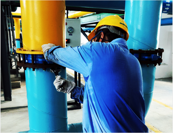 广西又到了一年中最热的季节了,室外温度近四十度,车间生产现场由于设备的持续运转和纵横交错的蒸汽管道,温度更是高达四十度以上。星空电竞系统服务事业部项目经理李军带领韩永刚、王博、张震仍然坚守在工作岗位上,在蒸汽腾腾的车间现场忙碌着,各个汗流浃背,衣服如同水洗的一般,干了湿湿了干,他们正在全力检修用户的TRT机组,为保证机组早日投产默默付出着。