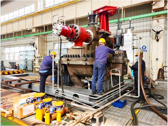 该机组是用户炼油产品调整及油品质量升级改造项目的核心设备,装置的节能改造对用户效益的提升起着关键作用。由于项目整体改造周期短,为确保机组按期交货,星空电竞汽轮机团队从前期产品的技术准备,以及零部件加工制造、配套件协作采购等各个环节都做到了精心策划,科学组织,使得该机组生产得以顺利推进。然而突如其来的新冠病毒疫情严重影响了既定计划的执行,本着“用户永远是对的”和“全心全意为用户服务,全力满足用户需求”的工作理念,项目团队按照集团公司党委提出的“疫情防控和生产履约两手抓”总体要求,在确保防疫各项工作到位的前提下,积极组织团队成员参与到复工生产中。大家加班加点,协同作战,攻坚克难,复工仅一周时间,机组便完成了装配工序,也创下了该类型汽轮机组装的最短周期。